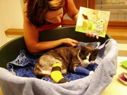 17. Auugust: Es geht aufwärtsTina und ich waren heute auf Krankenbesuch. Wie hat er sich doch gefreut, von Tante Tina eine halbe Stunde lang gekrault zu werden. Endlich hat man uns einen positiven Bericht abgeben können. Es geht mit der Wundheilung am Bein aufwärts. Vermutlich kann man sein Bein noch diese Woche operieren und dann heisst es "ab nach Hause". Natürlich wird unser Streuner noch etwas Hausarrest haben, aber das dürfte ja wohl das kleinste Übel sein.